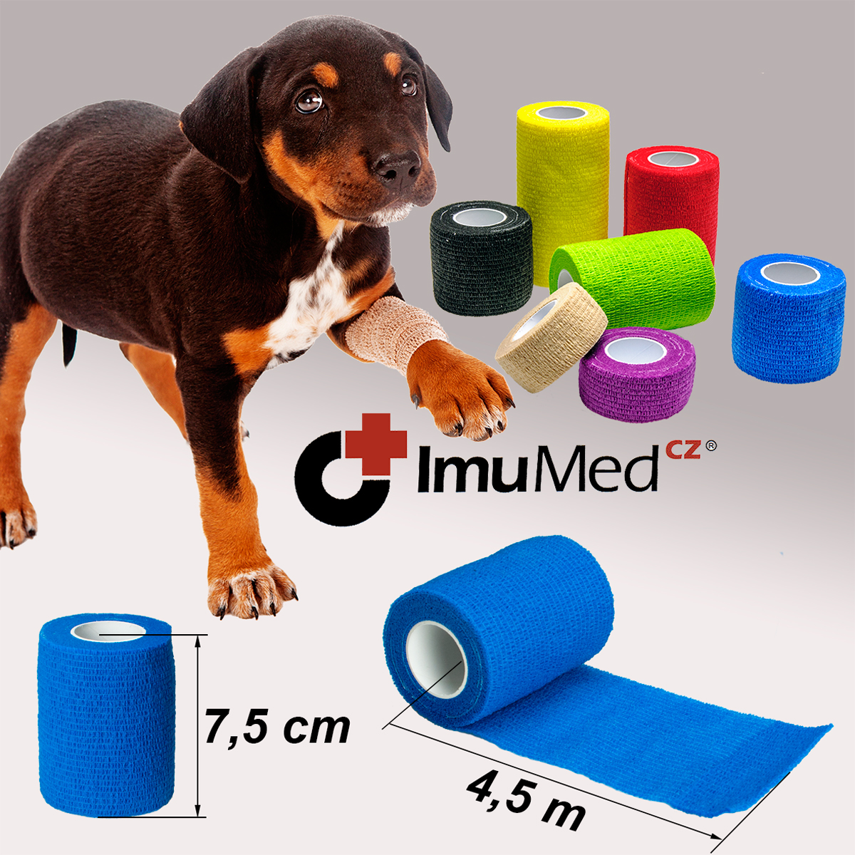 - ImuMedCZ obinadlo elastické pro psy 7,5 cm x 4,5 m modrá